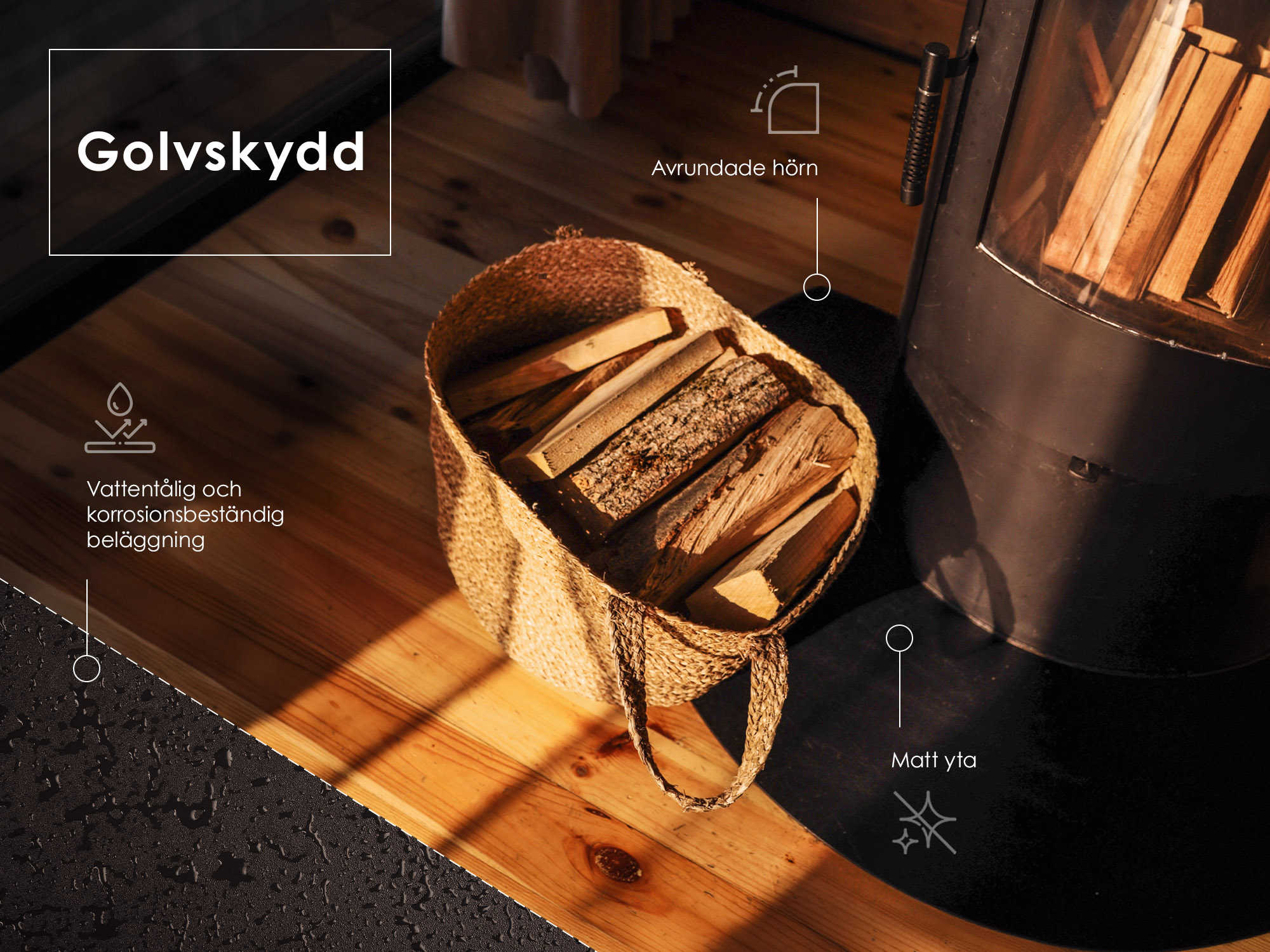 - Användningsområde: Produkten är endast ett golvskydd; använd den inte för direkt förbränning av material på dess yta.