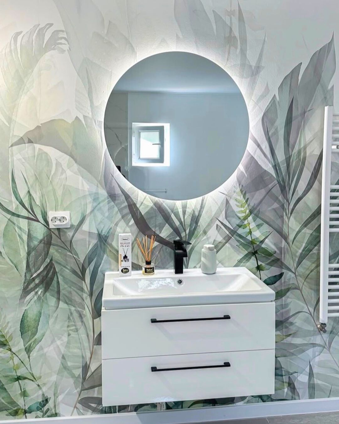 Den runda LED-spegeln med en storlek fi 100 cm är ett perfekt val för dig som söker en kombination av stilren design och många användningsområden. Spegelns moderna, minimalistiska form gör den till ett dekorativt inslag oavsett om den placeras i badrummet, hallen, vardagsrummet eller sovrummet, och den lyfter omedelbart rummets estetik.