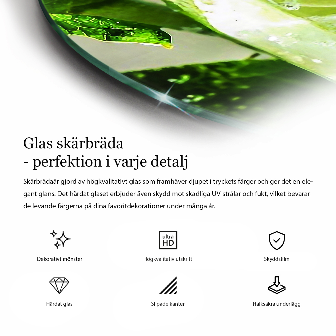Tillverkad i härdat glas, vilket inte bara ger ett elegant intryck, utan också gör skärbrädan extra tålig och hygienisk. Ytan är lätt att hålla ren, vilket bidrar till bättre arbetshygien vid matlagning. En praktisk och dekorativ lösning för dig som vill kombinera nytta med stil.