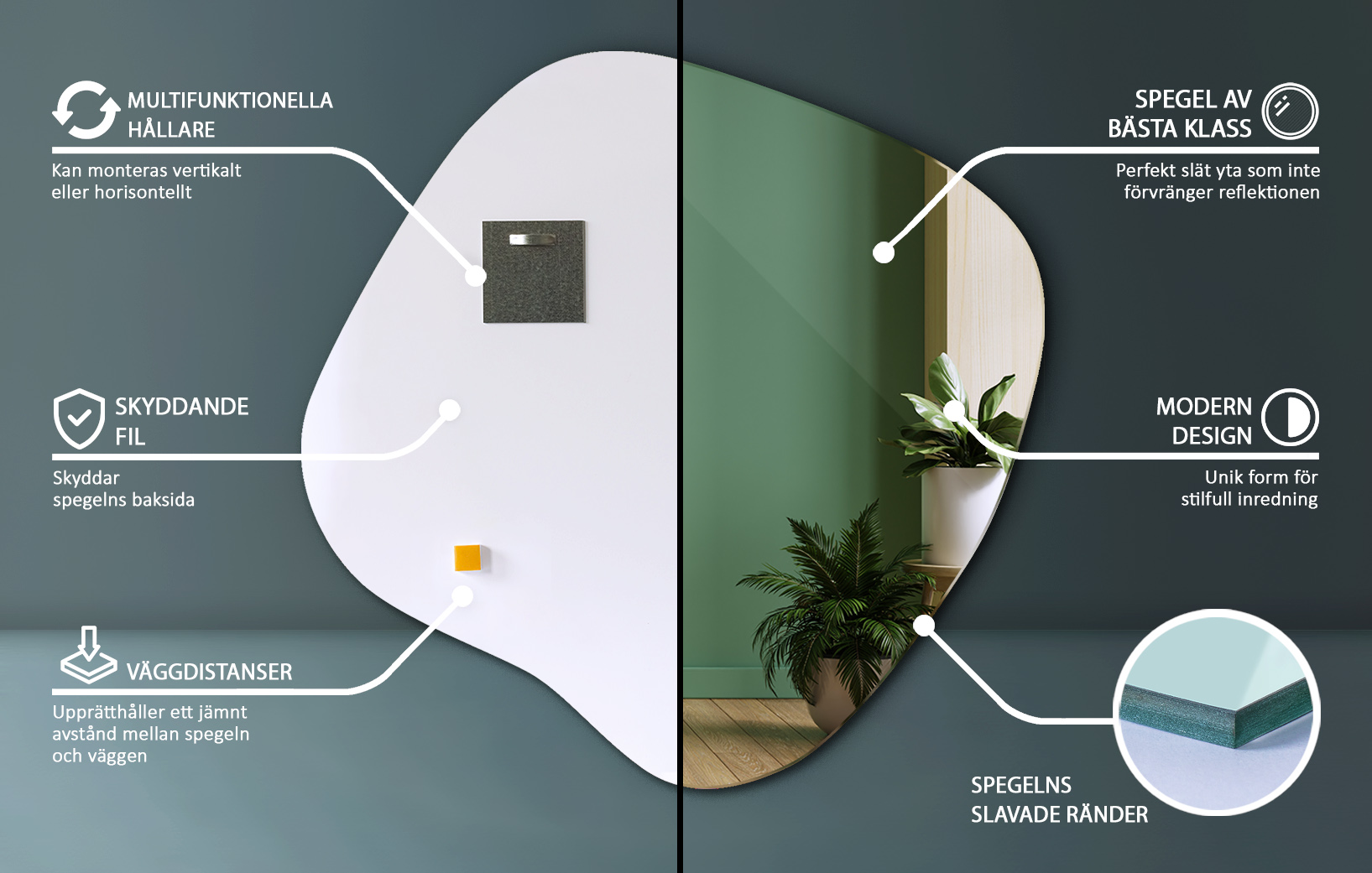 ♦ Spegel tillverkad i Polen