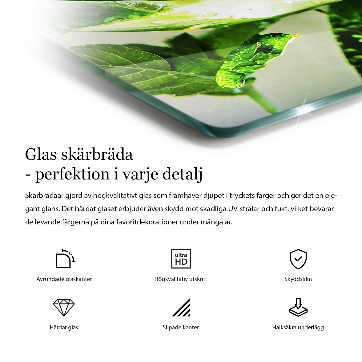 Hygien och säkerhet - Härdat glas är icke-poröst, vilket innebär att det inte absorberar lukt eller bakterier, vilket gör det till ett extremt hygieniskt val för köket. Det är också lätt att rengöra.