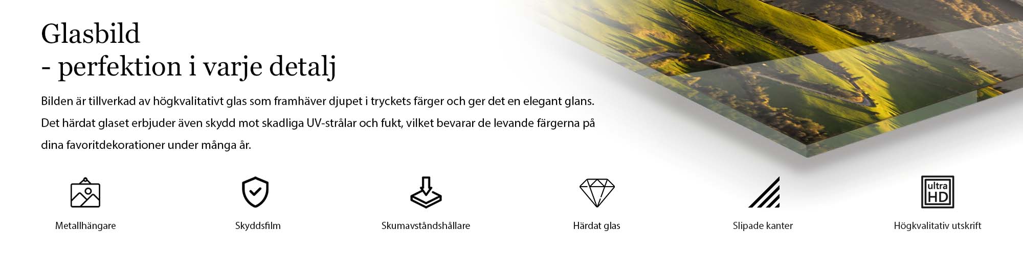 3. Kom ihåg att du köper en glaspanel med tryck. Motiv som glitter, guld, silver, betong, marmor, rostig plåt, trä etc. är tryckta och kan därför skilja sig i utseende från sina verkliga motsvarigheter.